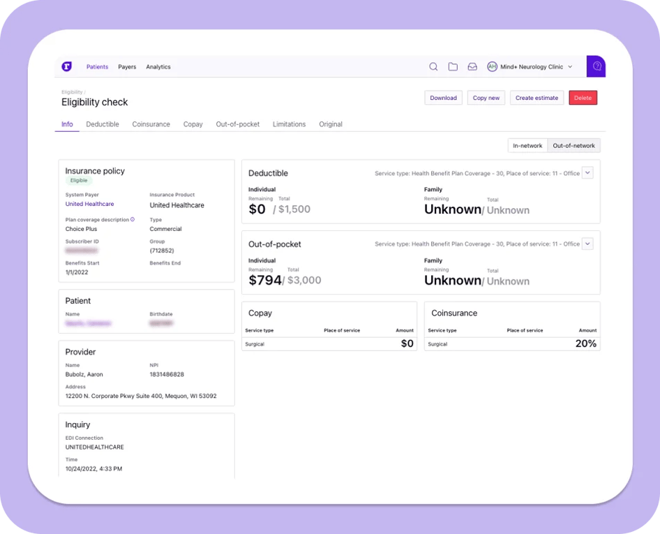 Now eligibility checks in Rivet pull in more information for out-of-network pricing.